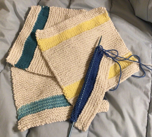 Nothing for me to link to today. Sounds like you had a good visit to Texas. I like the simple dishcloths you're making, they look like a good way to use leftover yarn. Happy stitching, see you in a few weeks!